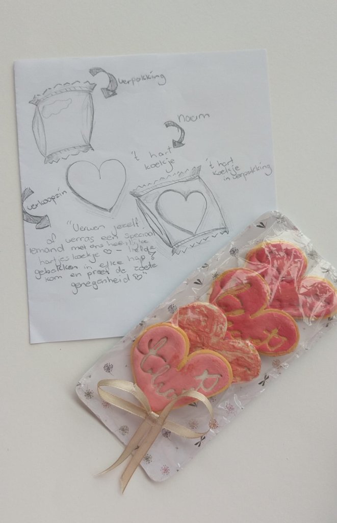 De leerlingen zijn enthousiast aan de slag gegaan met het ontwerpen van zowel de koekjesvorm als de verpakking.