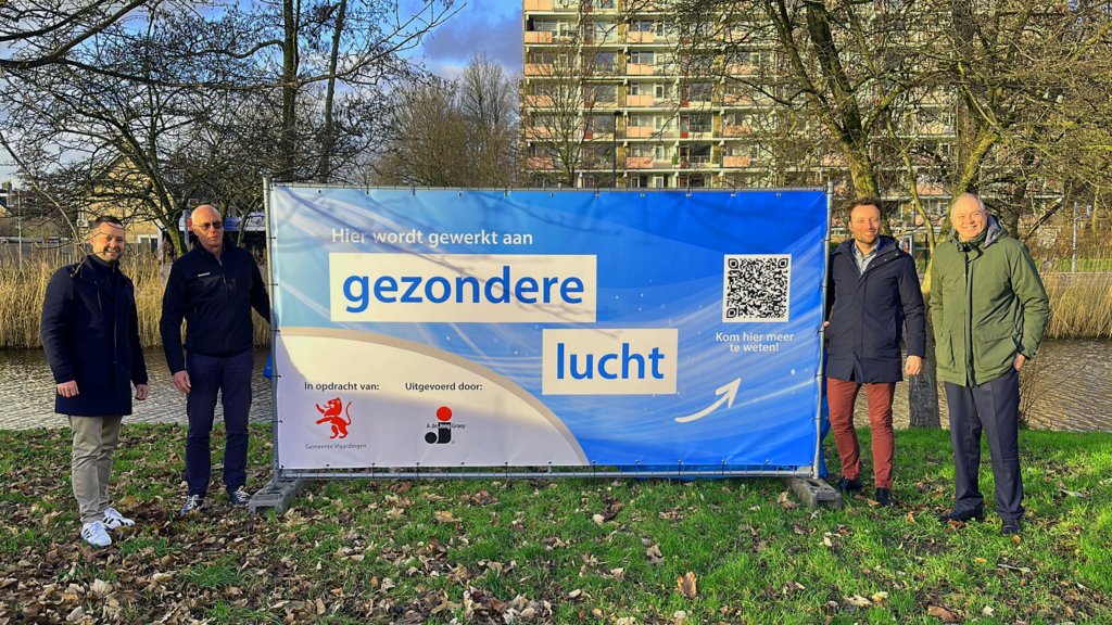 Vanmiddag heeft de Vlaardingse wethouder Koen Kegel samen met Jeffrey Veenstra (firma A. de Jong), John van Beek (rector De Vos) en Wim Kokx (College van Bestuur OSVS) een doek onthuld. Het doek staat langs de Frederik Hendriklaan en via de QR-code is meer informatie te vinden over het project.